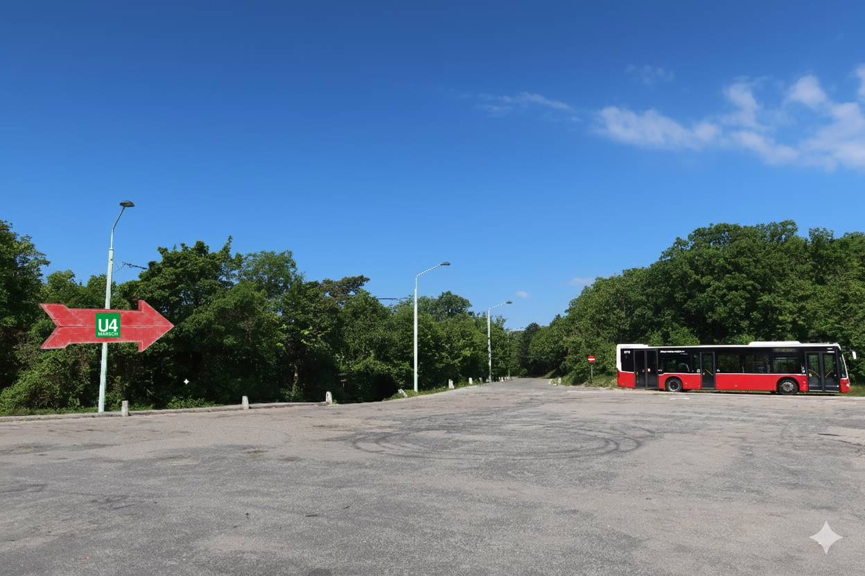 Es ist so weit. Nun muss eine Entscheidung her. Die Schleifengeher halten sich entlang des rechten Weges. Die Etappenmarschierer wählen nun den linken Weg. Sollte man aus gesundheitlichen Gründen oder einem Motivationstief folgend hier abbrechen müssen, steht die Autobuslinie 38A für die Rückkehr nach Heiligenstadt zur Verfügung. Aber nicht für uns, da wir voll im Saft und voll des Tatendranges sind.