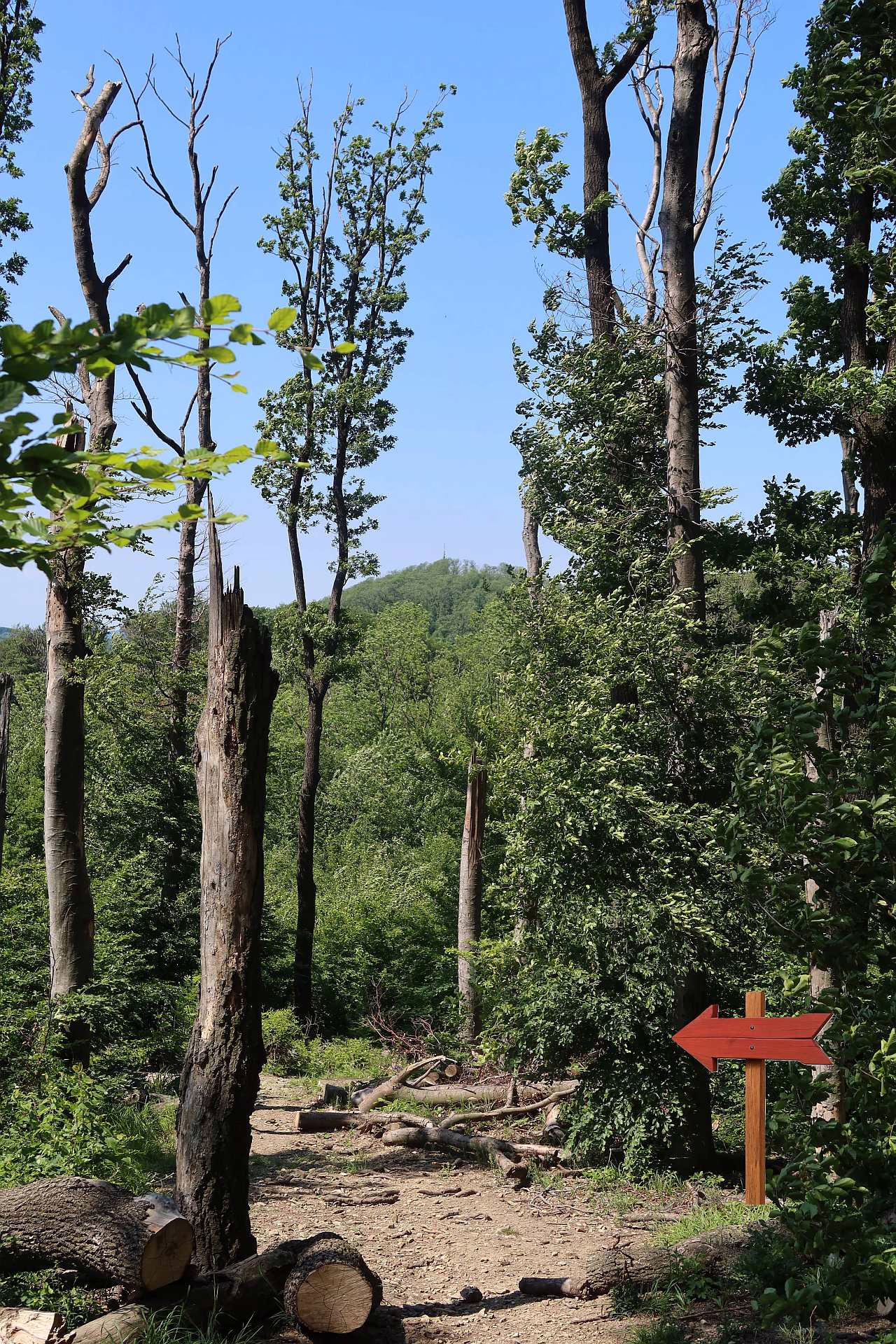 Bild 1: Das ist die Charakteristik des Abstiegspfades am Vogelsangberg. Wenn wir hier nach vorne Blicken, erkennen wir bereits die Habsburgwarte auf dem Gipfel des Hermannskogels. das Ziel der Etappe 3 und der Schleife 3.