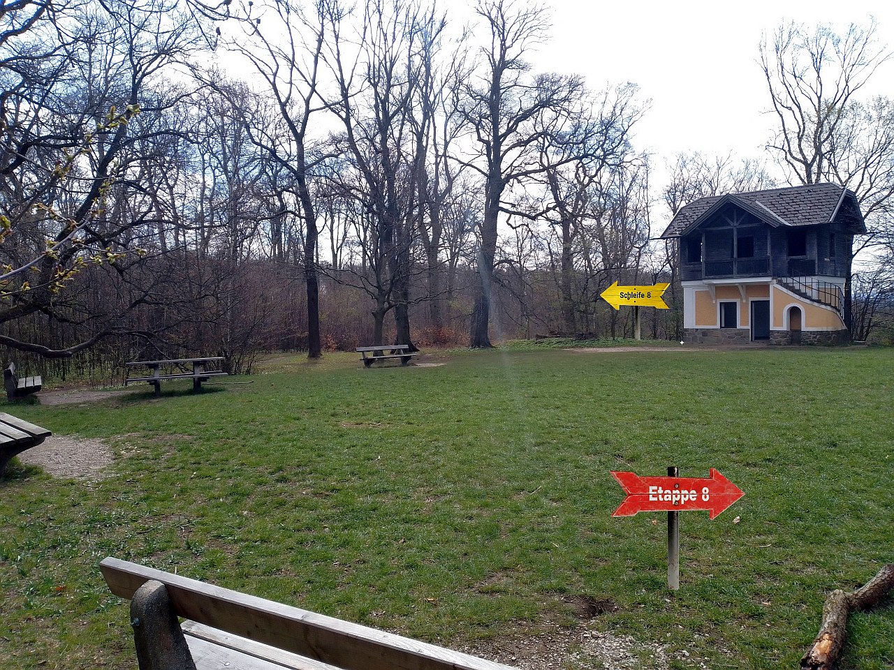Gleich hier am Beginn der Etappe 8 verlassen uns die Schleifer, da sie zum Schwarzenbergpark hinunter marschieren. Wir hingegen werden mit nicht allzu vielen Höhenmetern den Exelberg anvisieren. Dort werden wir die Streber wieder treffen.