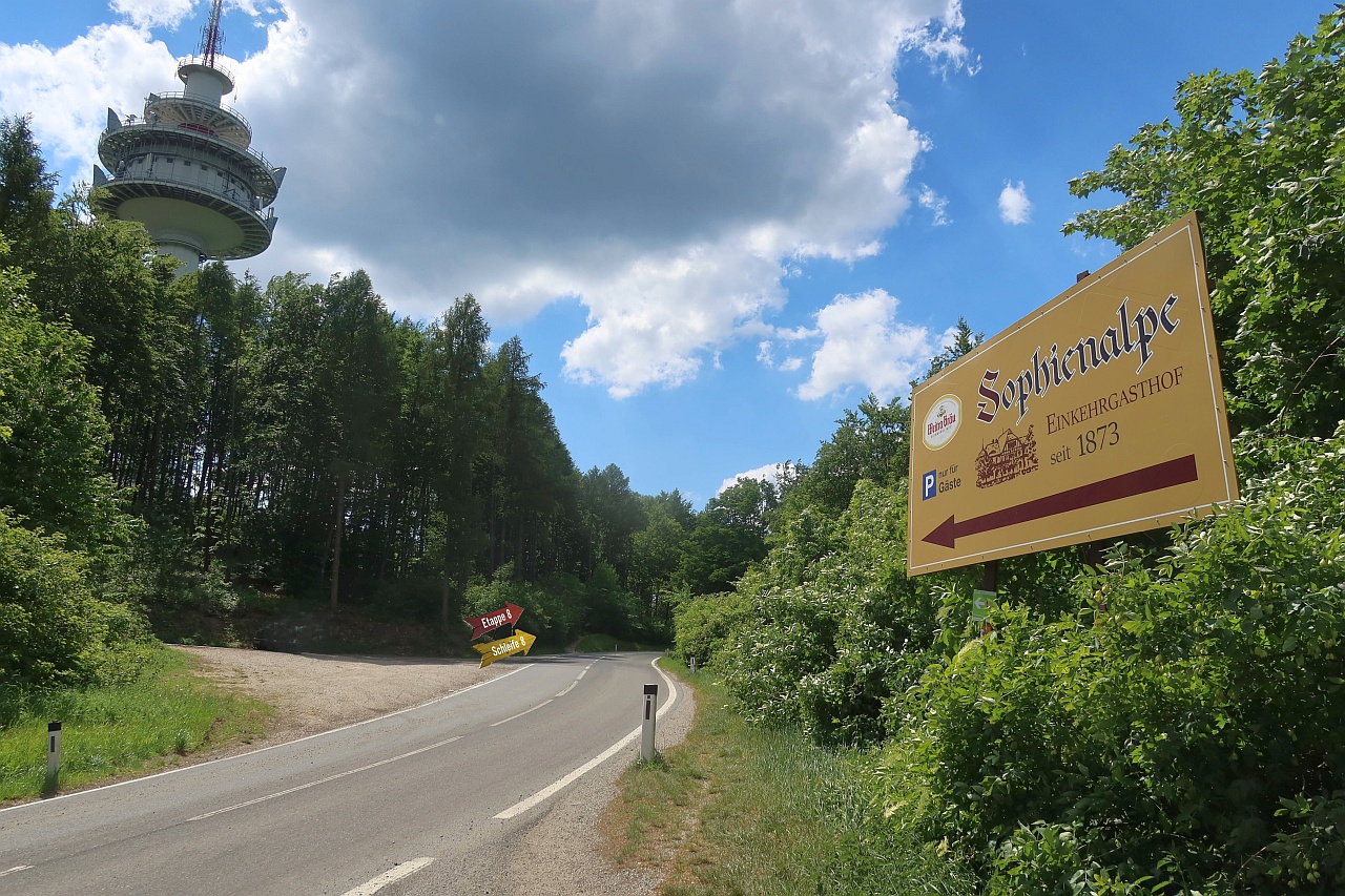 Bild 10: Endspurt zum Schleifen- und Etappenziel. Geschätzte 200 Meter noch, dann ist auch dieses Teilstück in trockenen Tüchern. Aufpassen sollten wir trotzdem. Die Sophienalpe ist zwar leider dauerhaft geschlossen, aber es könnte sich doch ein Auto hierher verirren.