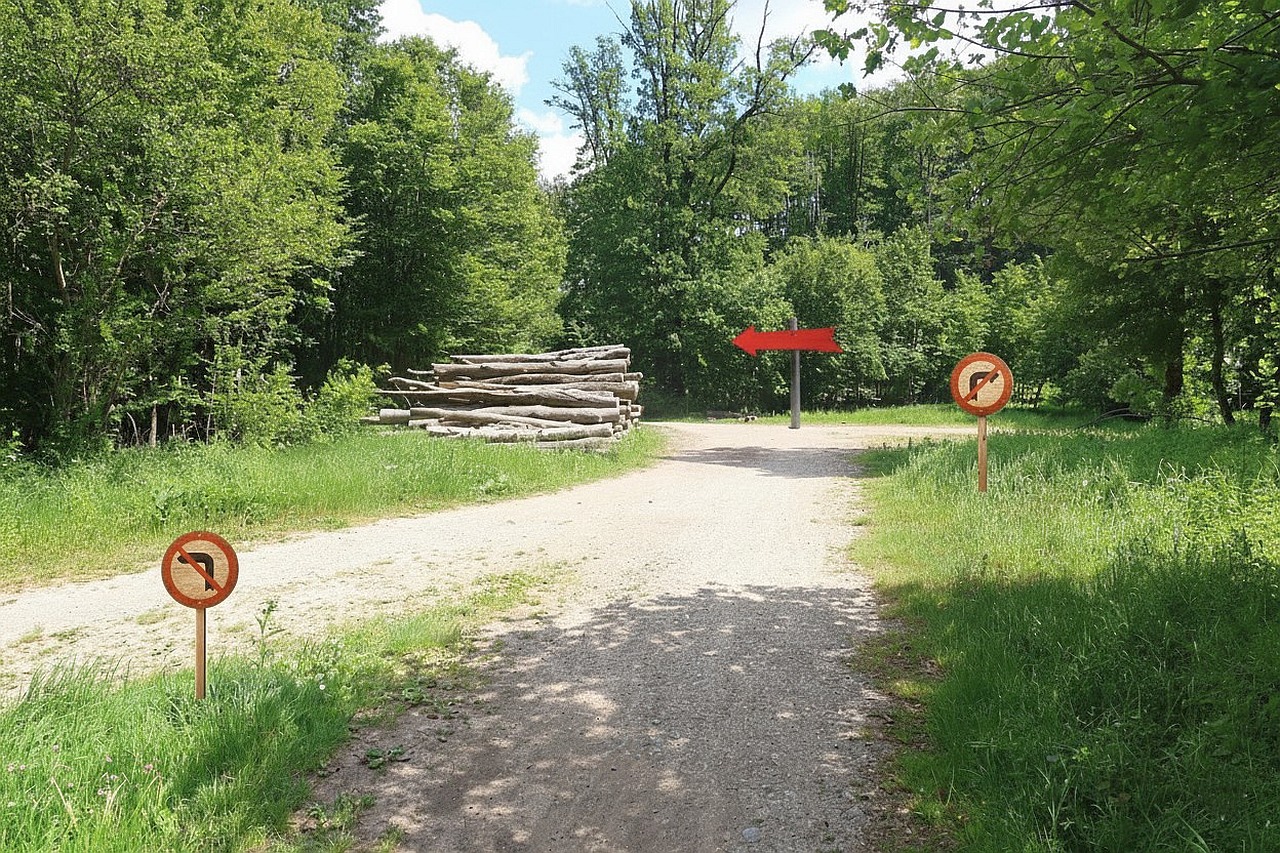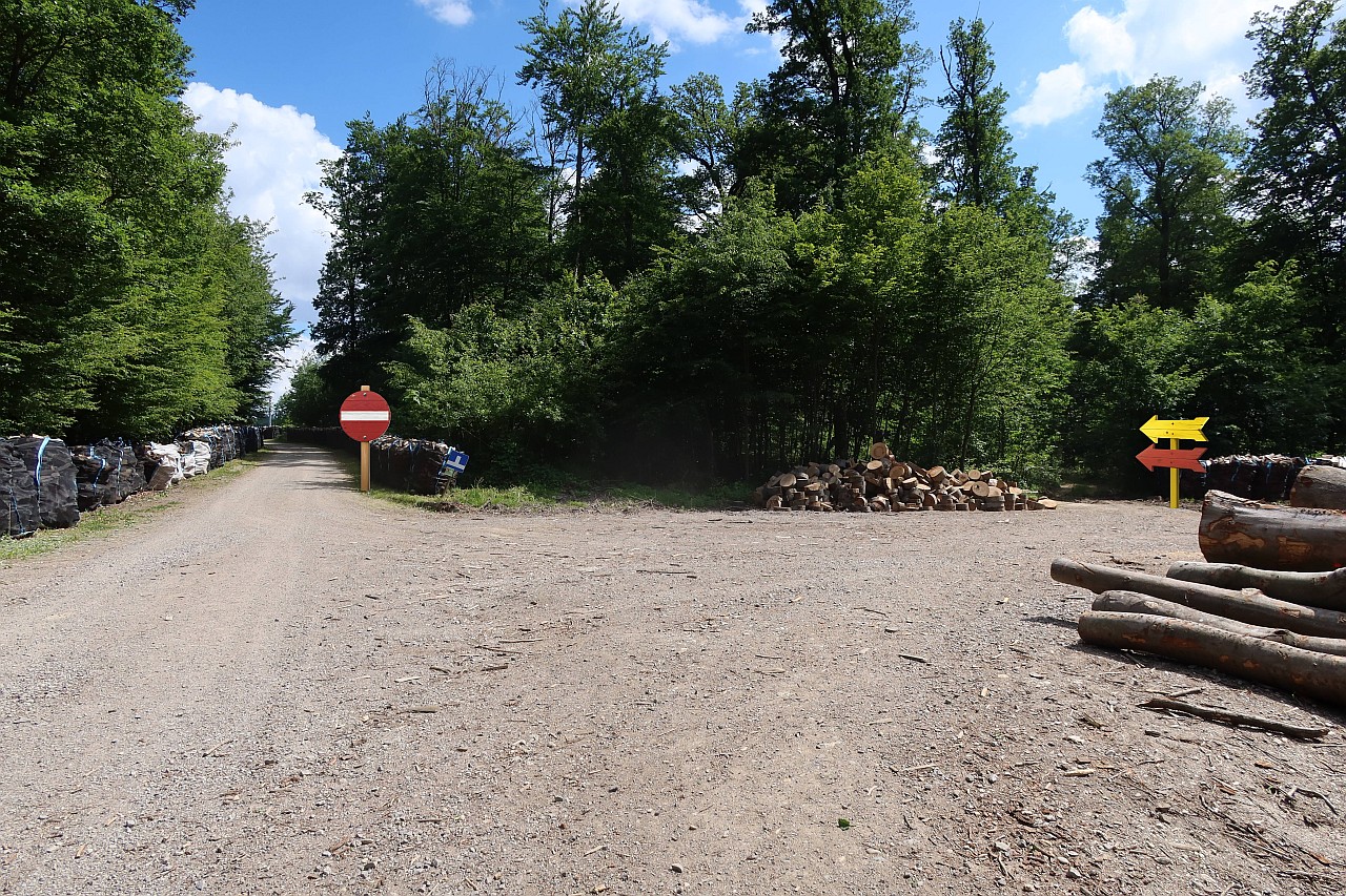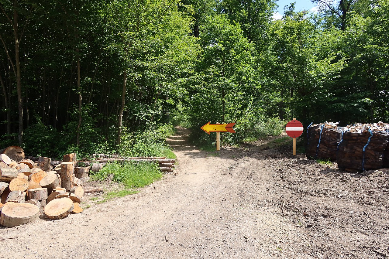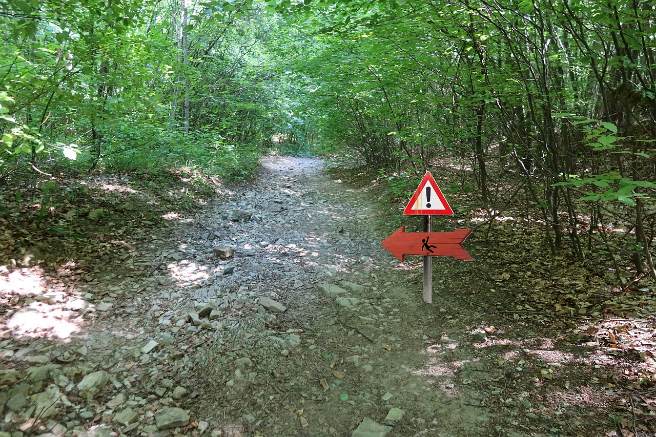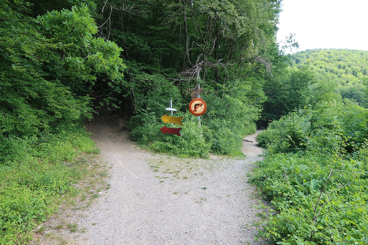 Bild 1: So schaut es beim Abzweiger aus. Wir sehen auf der linken Wegseite diesen Wegweiser und können erkennen, dass es hier keine Möglichkeit gibt, falsch abzubiegen. Na dann los.