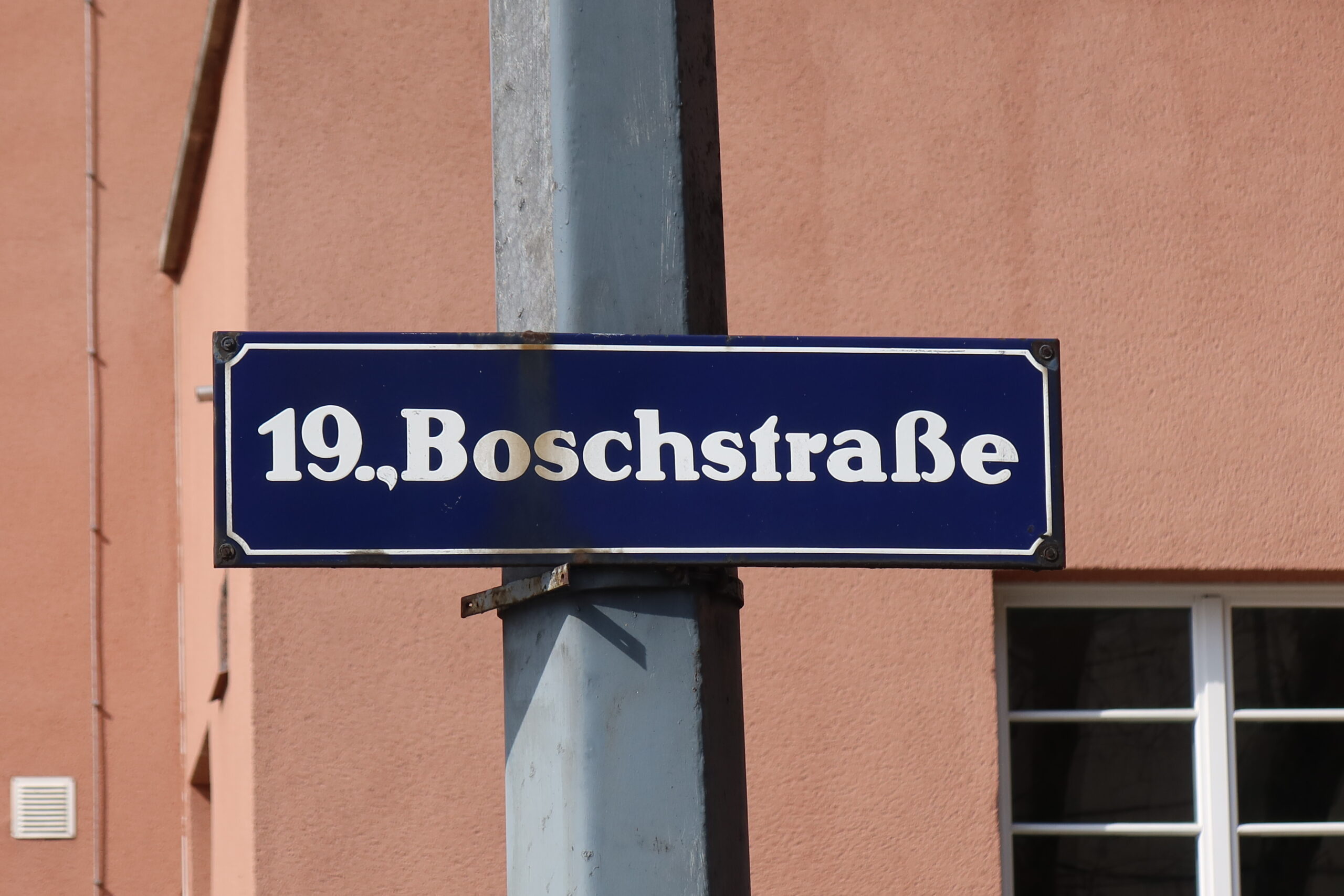Bild 3: Wir kontrolieren, ob wir uns tatsächlich in der Boschstraße befinden, denn diese müssen wir begehen. Unsere Tour beginnt im 19. Bezirk. In weiterer Folge werden wir auch den 14. und 17. Bezirk besuchen und teilweise auch Niederösterreich.