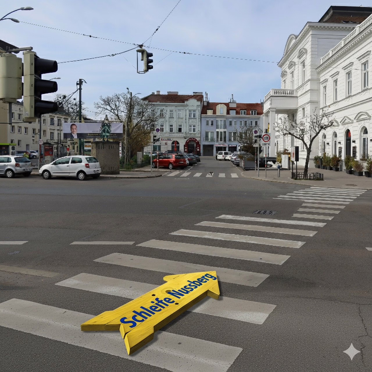 Bild 3: Wir haben den Nussdorfer Platz soeben über die Greinergasse verlassen und begehen diese bis zur ersten Quergasse rechts.